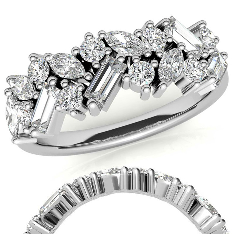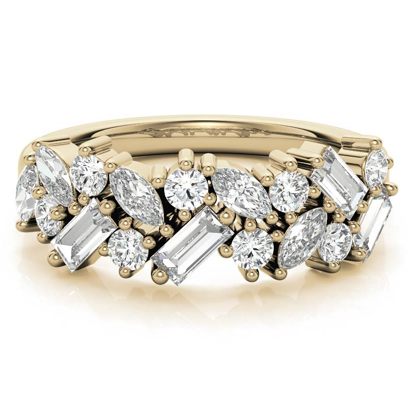 This beautiful lab grown diamond stackable band features 1.11tcw of round brilliant, marquise, and baguette-cut lab grown diamond gemstones, set in 14k or 18k gold.