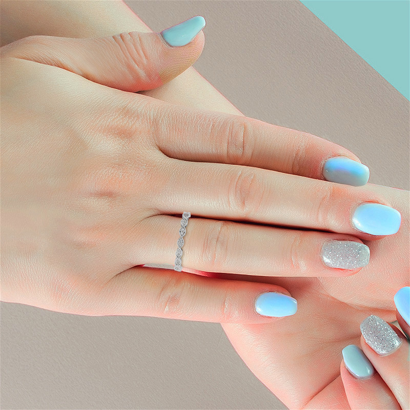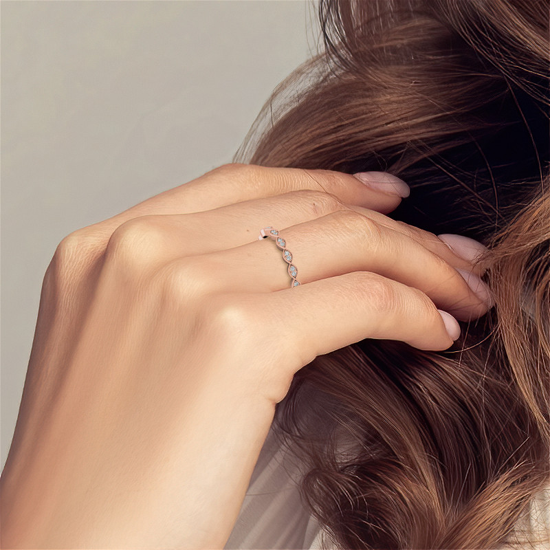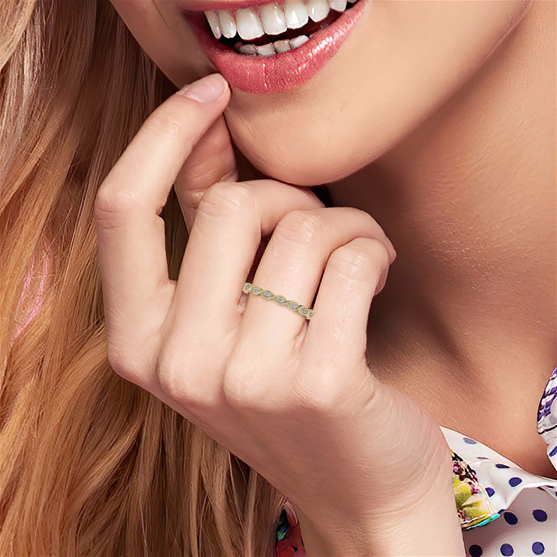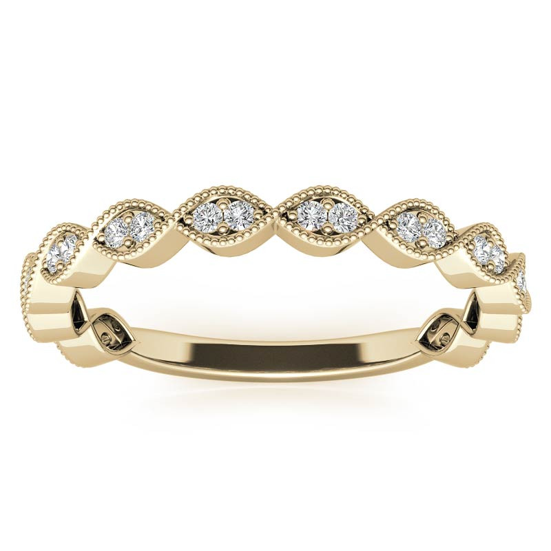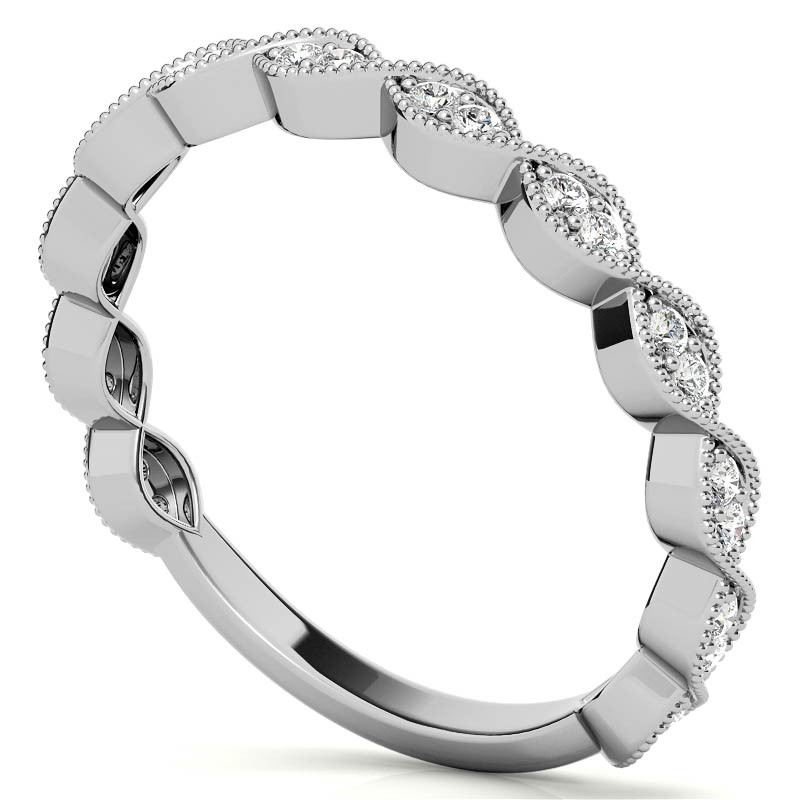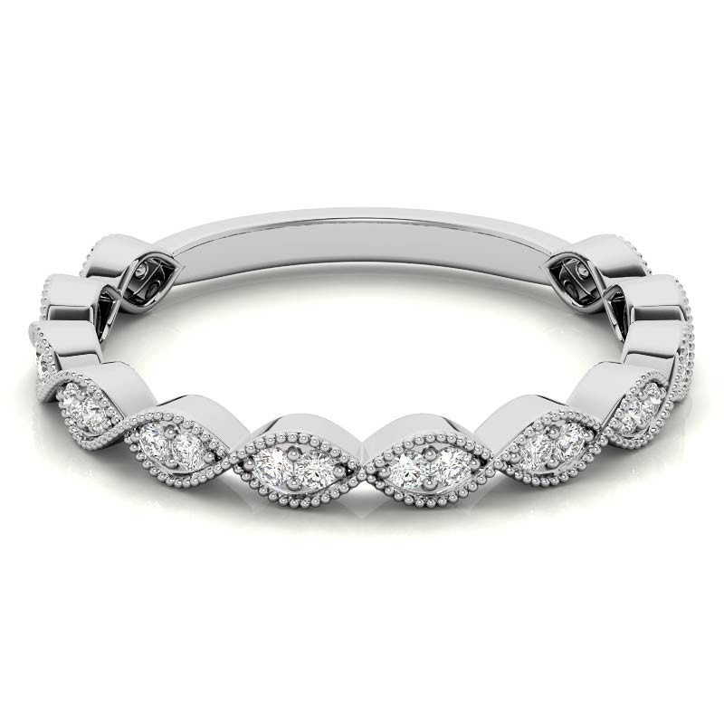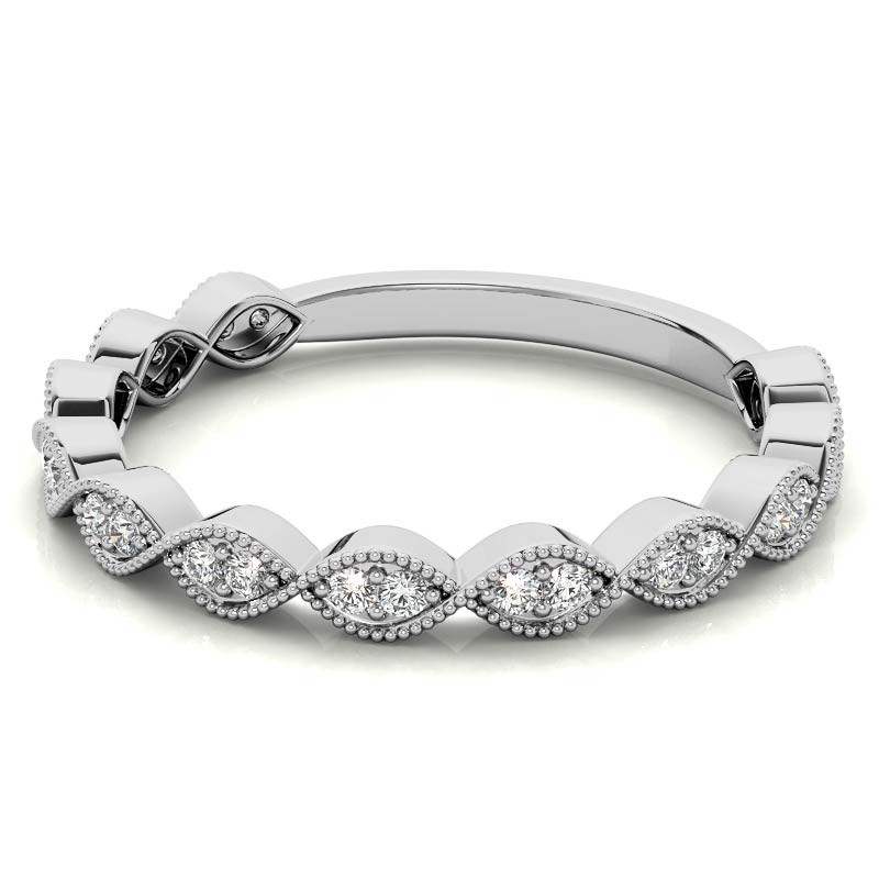 #stack166 Round Scalloped Band Lab Grown Diamond Stackable Band with Milgrain
