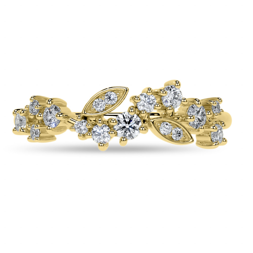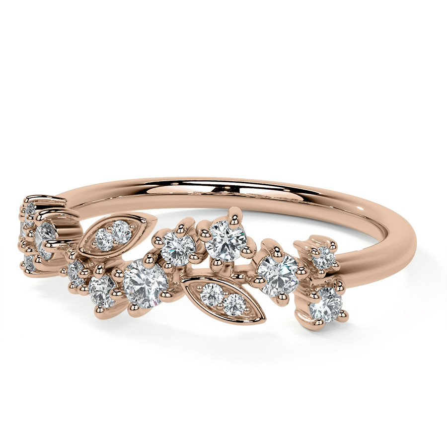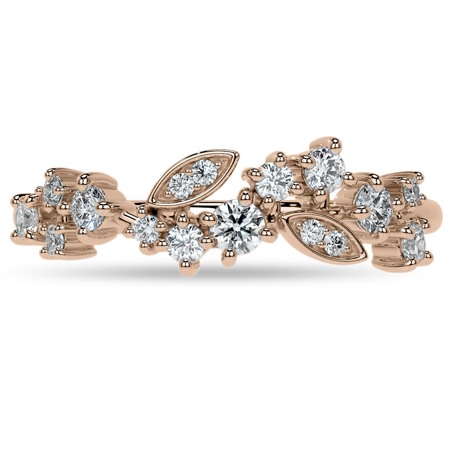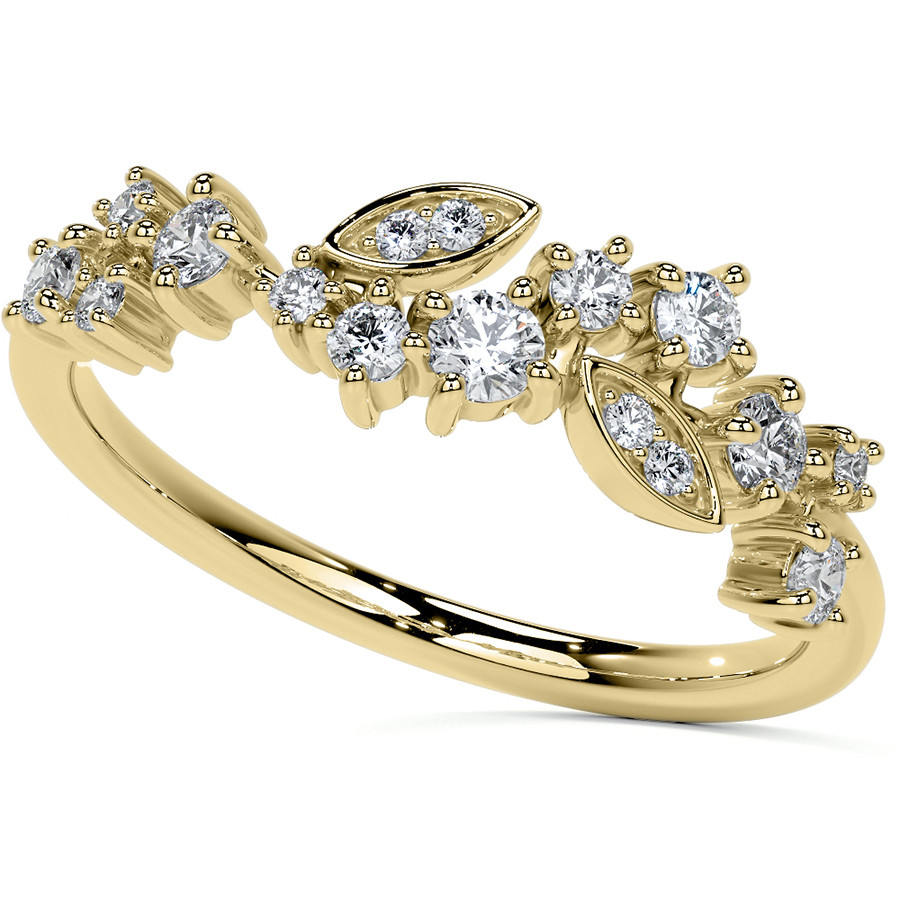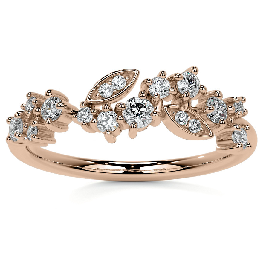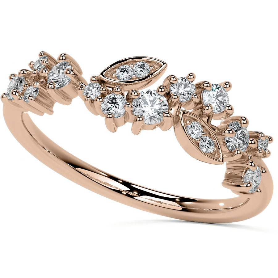 This beautiful lab grown diamond stackable band features an unique cluster style design with round and marquise shaped sections, 0.30ct of round colorless lab grown diamond side stones, and is cast in your choice of 14k gold, 18k gold or platinum. The band width is approximately 1.5mm.
