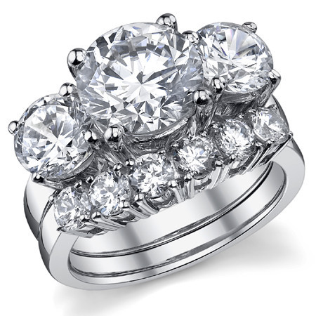 #thr124b 5.5ct (9.5mm,6.5mm) Round Brilliant Lab Grown Diamond Three Stone Ring