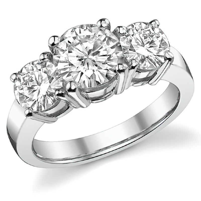 #thr129a 2.75ct (7mm,6mm) Round Brilliant Lab Grown Diamond Three Stone Ring