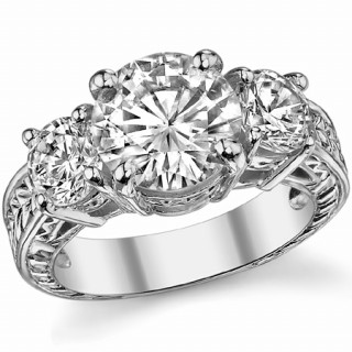 Featuring Three Stone, Antique, Etched and Side Stones Model #thr143c is available in 1 brilliant center stone options, 2 fine sidestone options, and your choice of 5 eco-friendly precious metals.