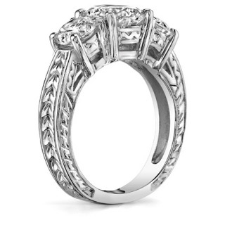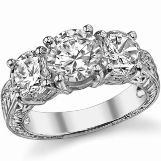 Featuring Three Stone, Antique, Etched and Side Stones from our Engagement Rings collection. Model #thr146a is available in 1 brilliant center stone options, 2 fine sidestone options, and your choice of 5 eco-friendly precious metals.