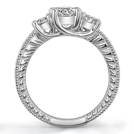 Featuring Three Stone, Antique, Etched, Trellis and Milgrain from our Engagement Rings collection. Model #thr218p is available in 1 brilliant center stone options, 2 fine sidestone options, and your choice of 5 eco-friendly precious metals.