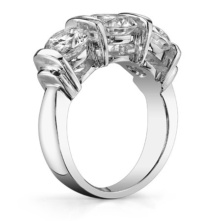 This beautiful 3-stone ring features a unique 3-stone bar set design with a 2ct round brilliant lab grown diamond center stone with two 0.75ct round brilliant lab grown diamond side stones for a total carat weight of 3.5ct. It is set in 14k gold, 18k gold or platinum.